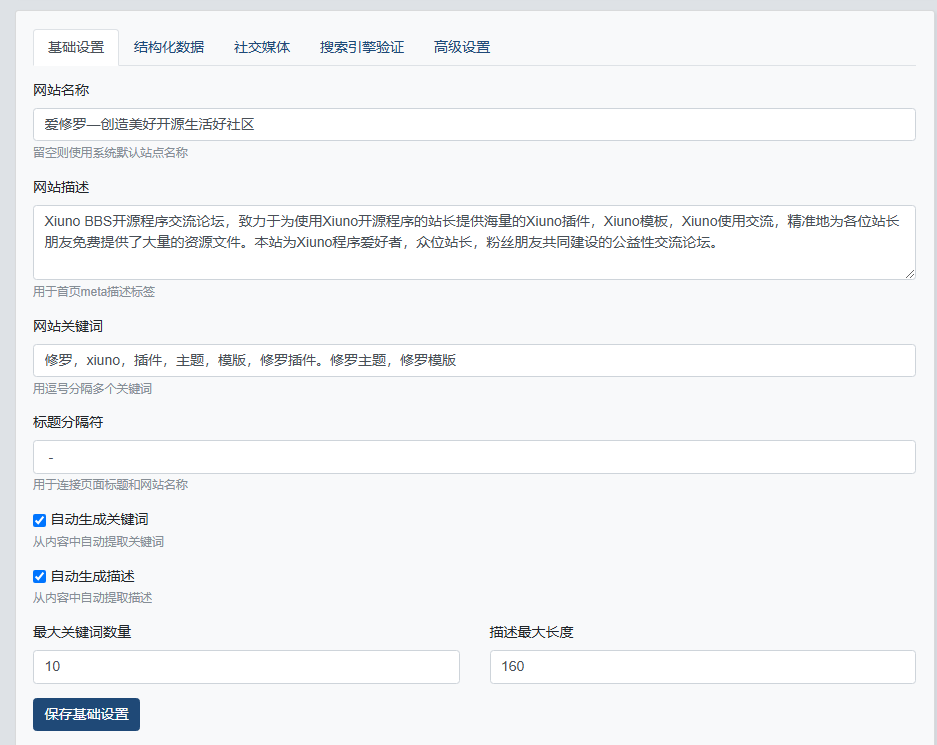 全面的SEO优化插件:自动生成meta标签、结构化数据、面包屑导航、社交媒体标签、关键词优化等功能。
