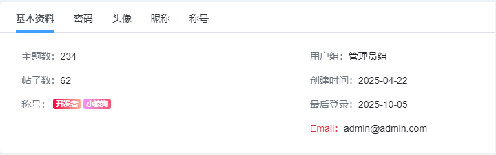 ④ 全站多处展示称号徽章(用户主页、帖子列表、主题详情等)